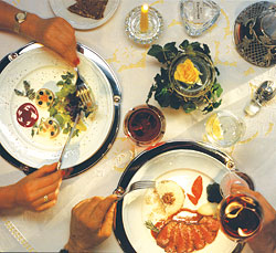 Evitemos hablar acaloradamente en la mesa y menos hacer gestos y señas con los cubiertos en la mano. Es de mal gusto soltar risotadas mientras estamos en la mesa. Sin ruidos; tenemos que tener cuidado de no hacer ruidos con los cubierto ni sobre el plato, ni en nuestra boca y mucho menos con el roce de los mismos cubiertos. Al sentarnos a la mesa apaguemos el celular, si estamos esperando una llamada importante podemos ponerle en modo vibrar y disculparnos para contestar en otra parte lejos de la mesa. Uso de la servilleta; jamás usaremos la servilleta en el cuello, esta se coloca de forma casual sobre las piernas. Antes de tomar agua o vino debemos limpiar nuestra boca con la servilleta. |